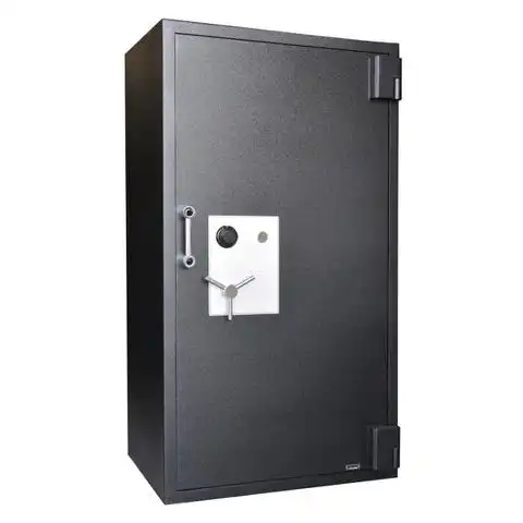 The lock is equipped with a standard U.L. listed Group II key changeable dial combination lock. An ESL10XL or an even better ESL20XL are available as upgrades for an extra charge. The locks are protected by a massive drill shattering hard plate and two additional spring-loaded devices. The hinges on this high security safe offer a vertical height adjustment and utilizes an oil impregnated bearing ensuring easy door operation.