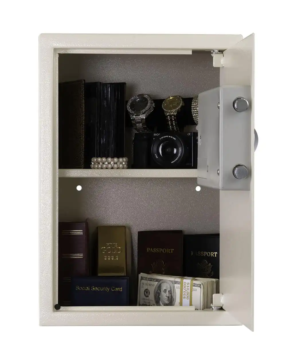 - Heavy 14 gauge solid steel construction, plus dual live bolts made also of heavy gauge steel.