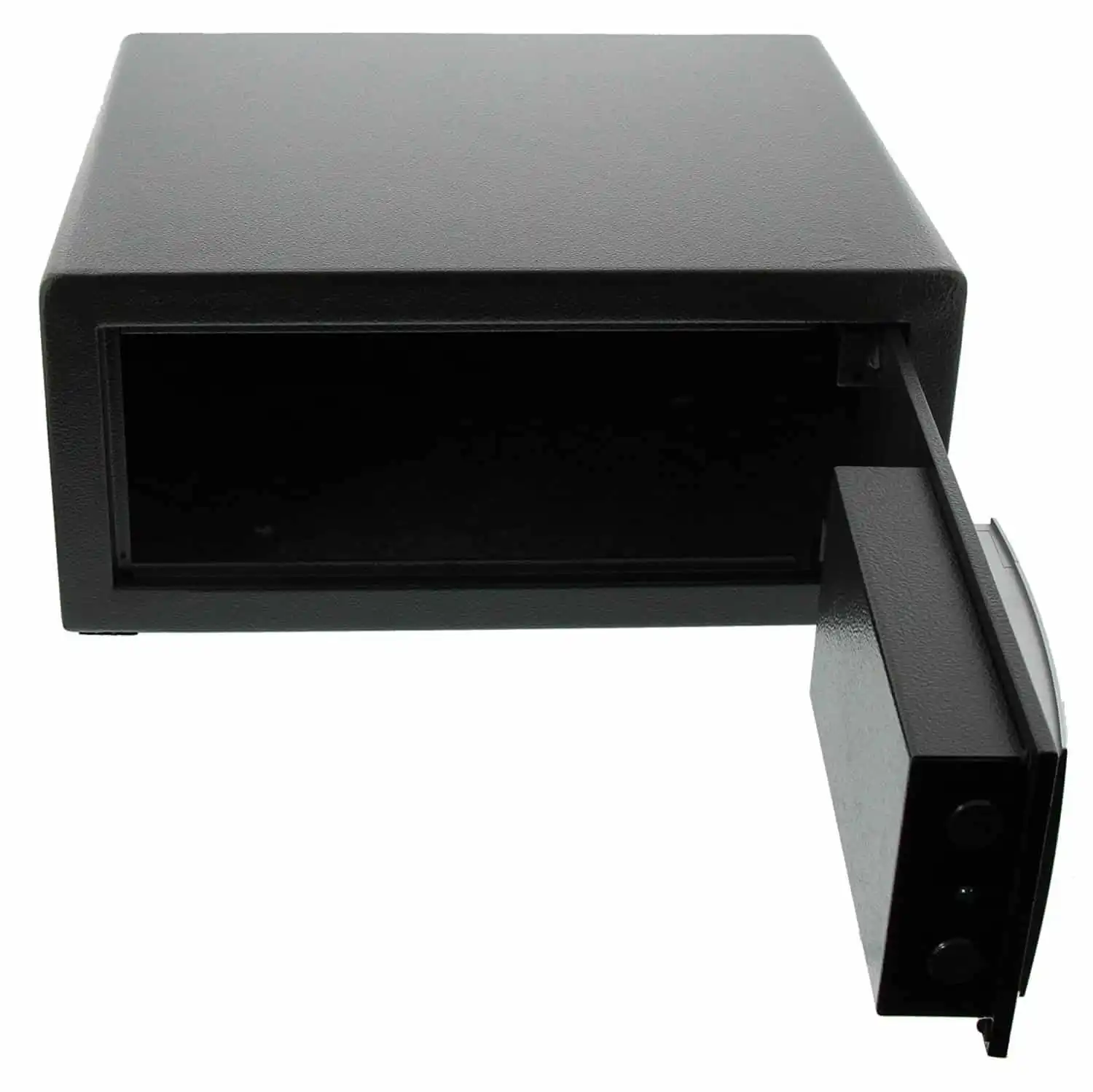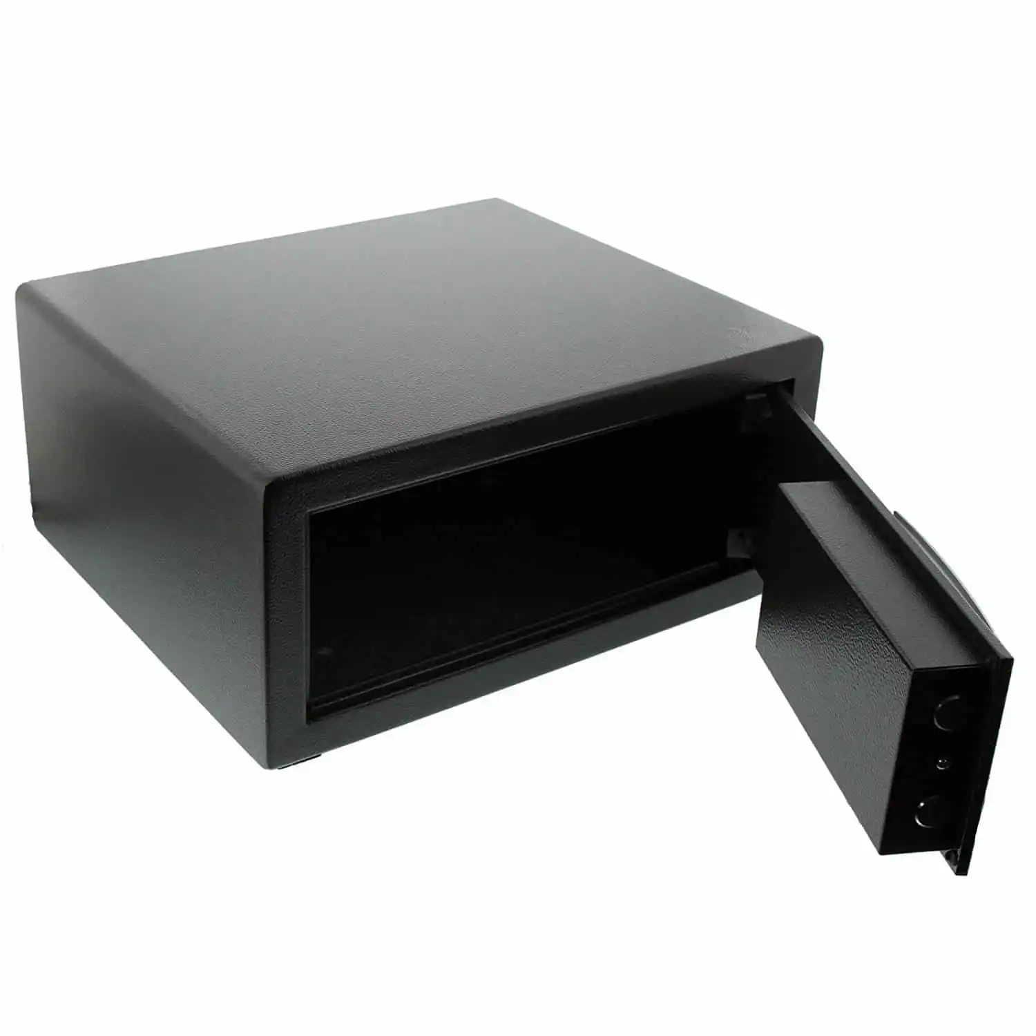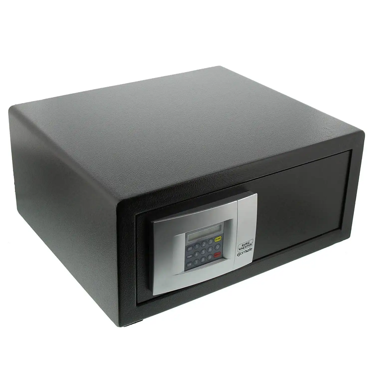 - Solid single walled steel construction with additional anti-drill plate in the door frame to protect the safe bolts