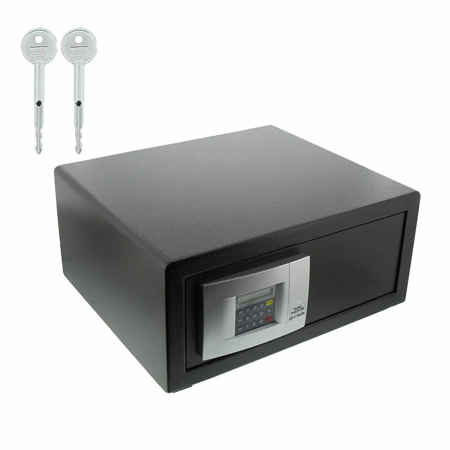 - Emergency key override feature allows for access to the safe in the event of a forgotten user code