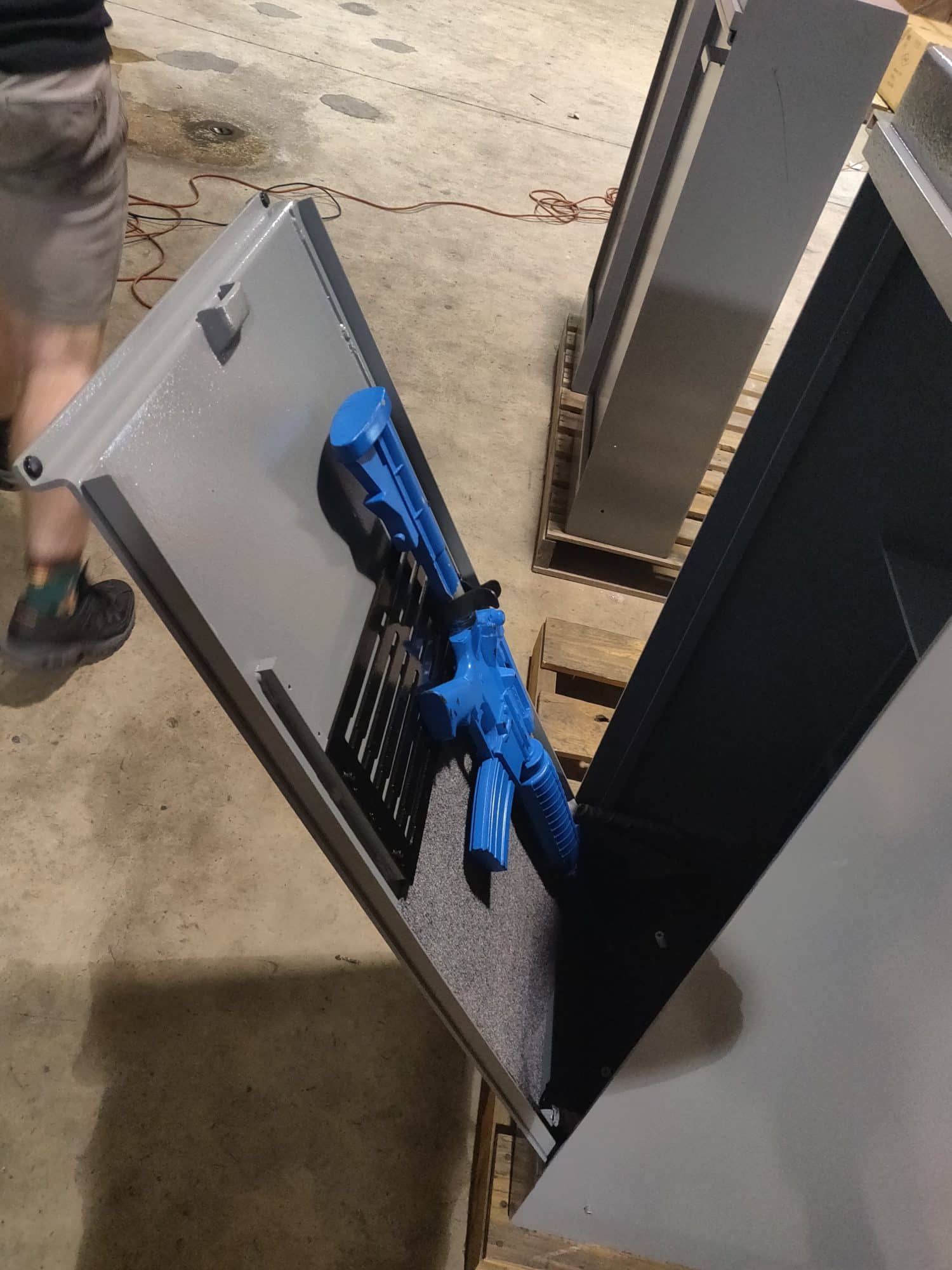 - Kydex holders attach the firearms to the door for a safe