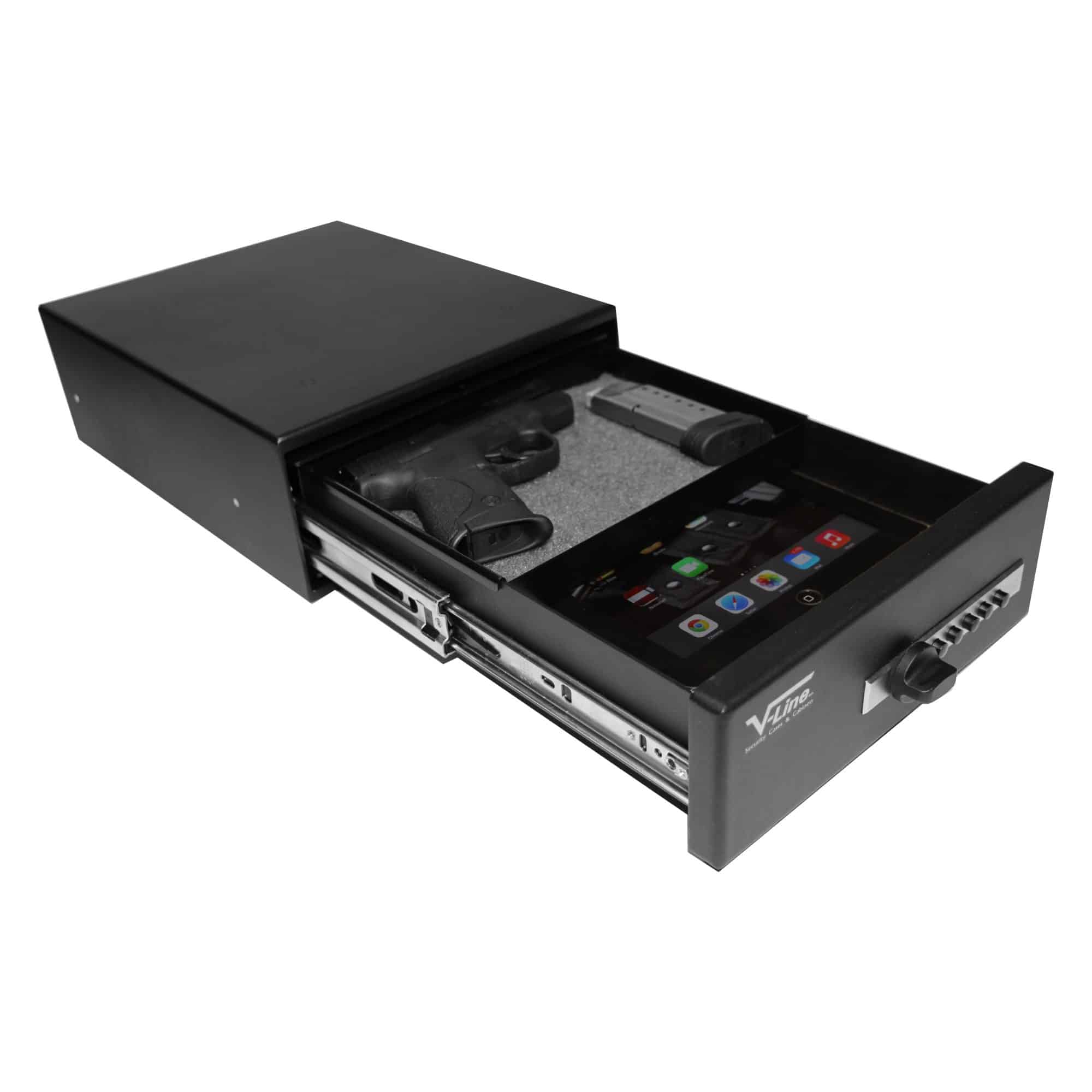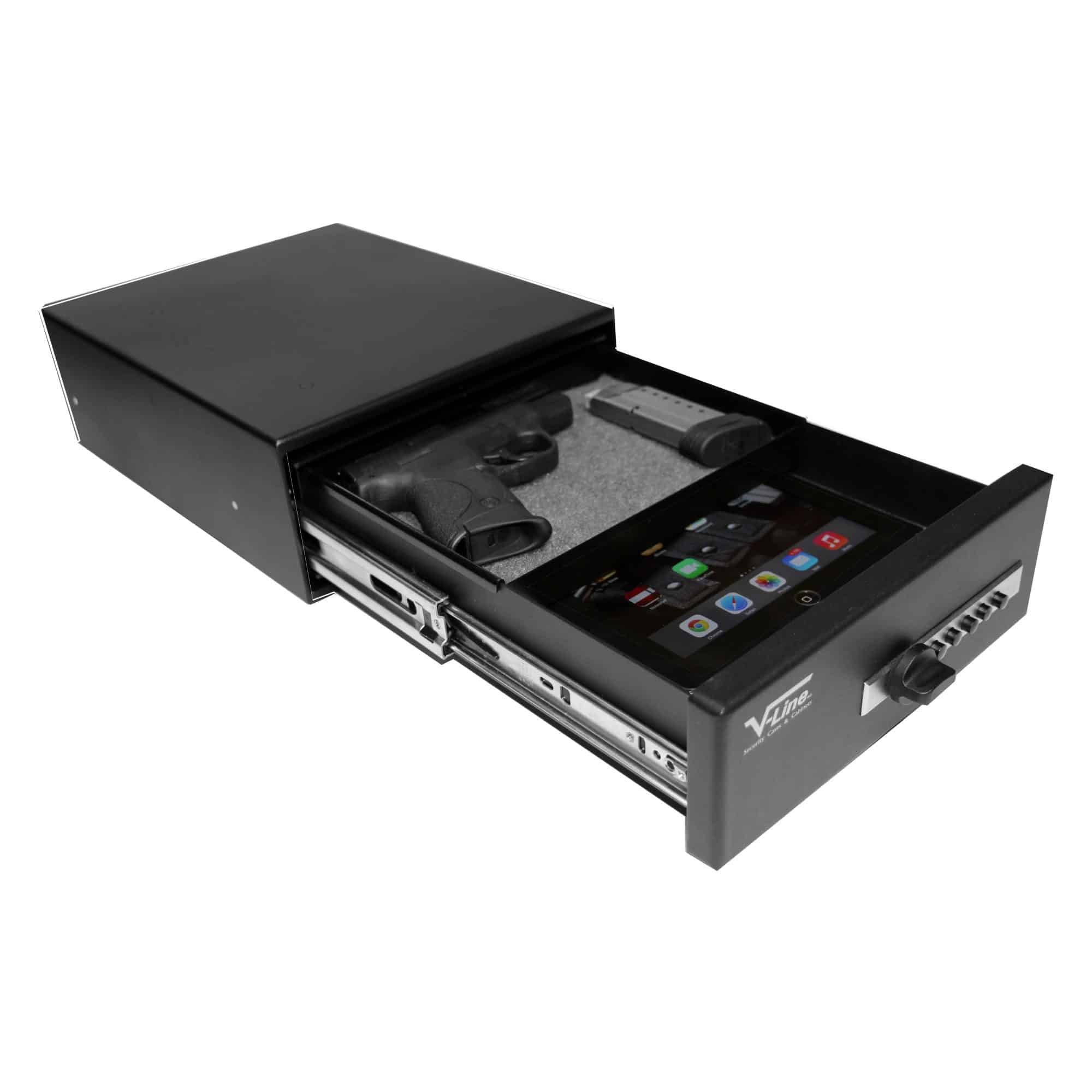 - Spacious Drawer is large enough to hold an Ipad style Tablet or two 1911 type firearms with room to spar for extra magazines.