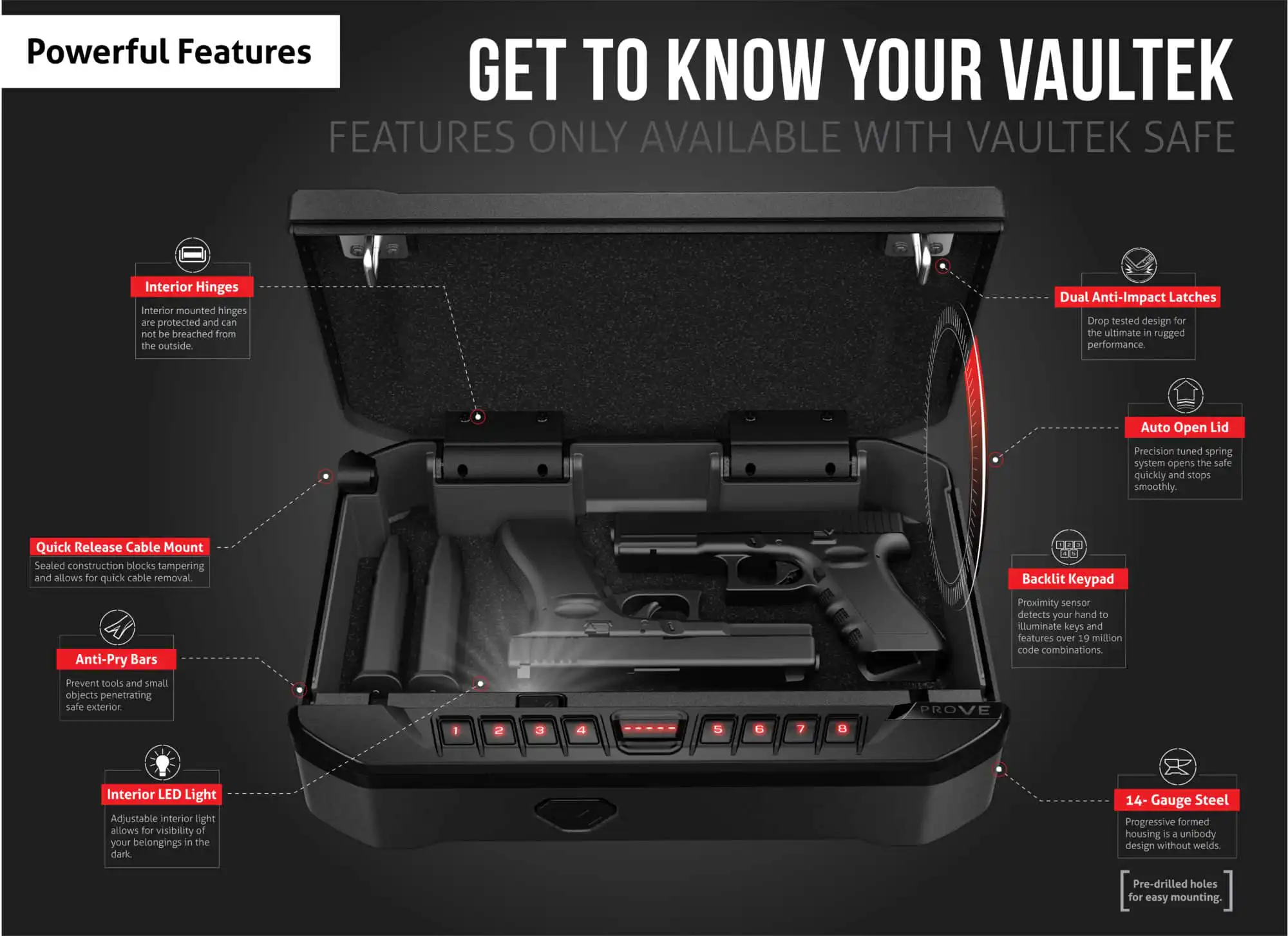 Anti-Impact Latches, Bolstered Interior Hinges. - Vaultek’s signature UNIBODY (No Weld) DESIGN