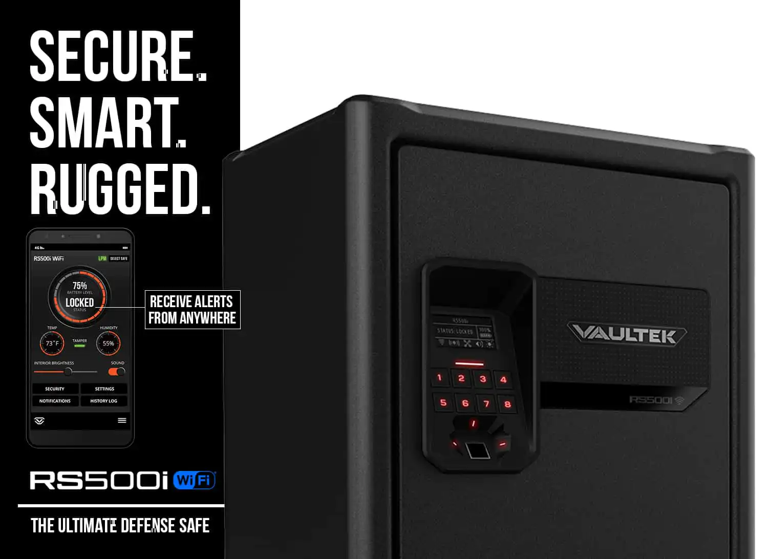 - Wi-Fi TECHNOLOGY uses the Vaultek Wi-Fi Smartphone App and an exclusive online dashboard for the most advanced safe management tools available. Receive instant alerts for critical safe activity from anywhere. View battery status, adjust the brightness of the interior light, check the history log, and much more. The LCD screen provides quick visual feedback for all safe activity and the rechargeable Li-ion battery provides power for up to 5 months in Low Power Mode, and charges in 2.5 hours with the included charging kit.