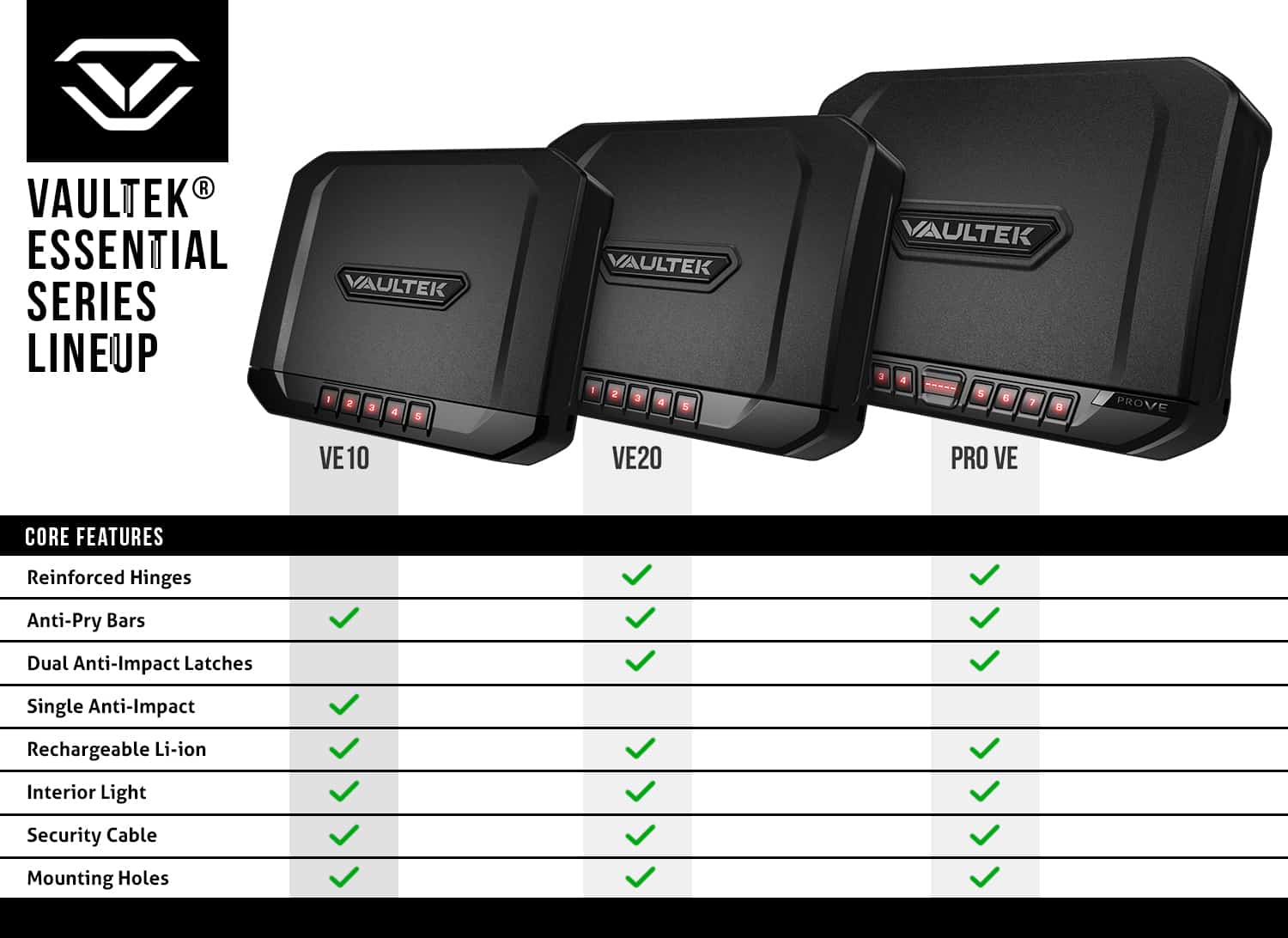 combinations. - LIGHTWEIGHT 18-gauge carbon steel construction features Vaultek’s signature UNIBODY